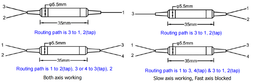 消光比Min.(dB) | 雙軸工作:20,快軸截止:22 | |||||