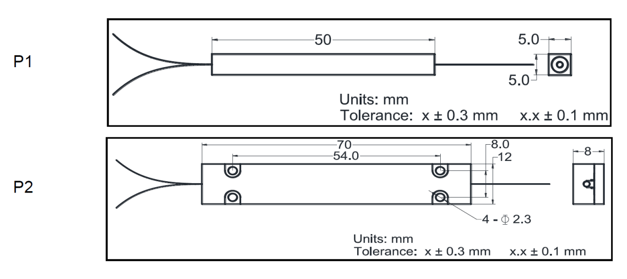 封裝尺寸L×W×H(mm) | P1:50×5×5 | P2:70×12×8 |