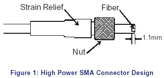 在傳統(tǒng)的光纖連接器生產(chǎn)過程中,光纖靠膠水來固定,光纖的端面被研磨成一定的形狀,當(dāng)系統(tǒng)在高功率工作時(shí),光纖的端部會(huì)產(chǎn)生熱量積聚,熱量達(dá)到一定的高度,固定光纖的固化膠水會(huì)氣化燃燒,從而導(dǎo)致光纖端面的燃燒,導(dǎo)致光纖損壞。高功率光纖跳線地連接器采用了空氣間隔(air-gap)的原理設(shè)計(jì),光纖會(huì)伸出1~1.5mm,這一段無膠的區(qū)域能夠保證高功率產(chǎn)生的熱量能夠安全的散發(fā),從而不影響光纖跳線在高功率下工作。