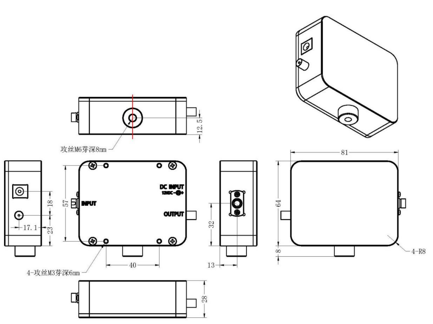PD12是一種帶放大電路的光電探測(cè)器,可與光學(xué)系統(tǒng)中的 FC 連接光纜一起使用。該裝置包括光電二極管、跨阻放大器、射頻連接器等,封裝在?個(gè)鋁制外殼中。FC 法蘭便于與光纖光源耦合,輸出端使用SMA連接器,以減小尺寸并最大限度的提高頻率響應(yīng),最大帶寬為 1GHz。探測(cè)器有兩種光譜范圍可選,分別是400~1000nm和1000~1700nm。