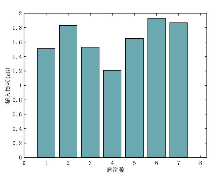 其中復(fù)用器從一維光纖陣列輸入光信號,耦合進(jìn)入光波導(dǎo)內(nèi)部,光束傳播方向發(fā)生了改變,在輸出端形成了與多芯光纖匹配的結(jié)構(gòu),然后耦合進(jìn)入多芯光纖繼續(xù)傳輸。解復(fù)用器中光信號從多芯光纖輸入,耦合進(jìn)入光波導(dǎo)內(nèi)部,通道三維光波導(dǎo)結(jié)構(gòu),光束的傳播方向發(fā)生了改變,在輸出端形成了與光纖陣列匹配的一維光波導(dǎo)結(jié)構(gòu),完成解復(fù)用。