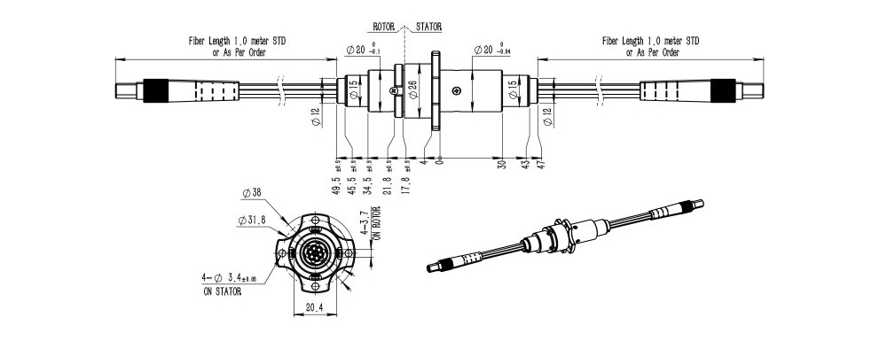 多通道光纖滑環(huán)是一種高精密旋轉(zhuǎn)連接裝置,專為需要同時傳輸多路光信號的應(yīng)用場景設(shè)計。軸向緊湊型多通道光纖滑環(huán),總長僅96.5mm,最多可以實現(xiàn) 12 個通道。可選擇單模、多模或者單多模混合,并有耐環(huán)境(沖擊、震動、高低溫)級別的產(chǎn)品可供選擇。
